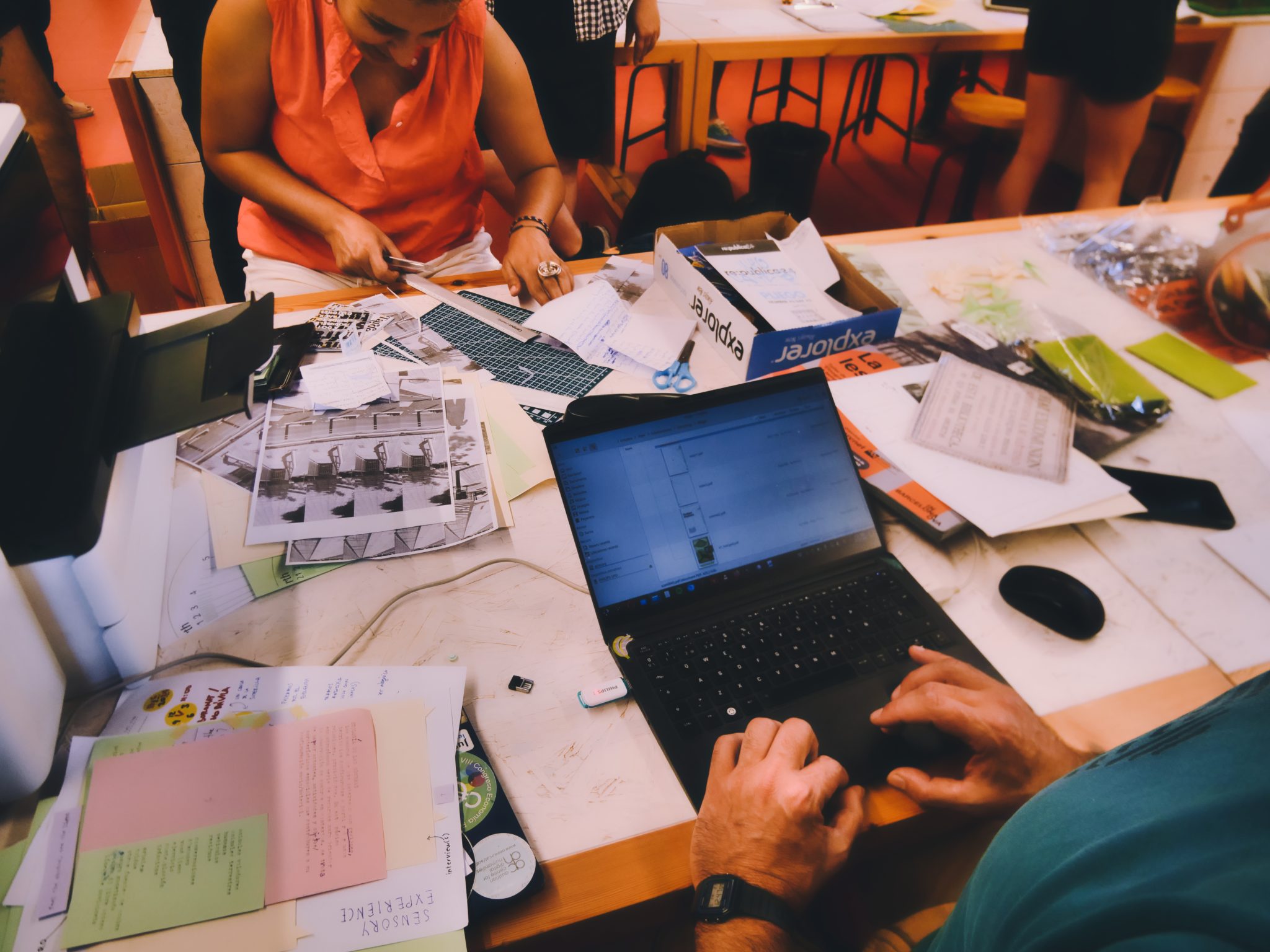 With the help of the mentors and a core group of 15 people who had registered – mostly from social sciences and architectural backgrounds – and the fluctuating assistance of people from the architectural contest, we had the immense luck to explore the possible research devices and mandates for the DoU. Our learnings were summarised on-site: the workshop ended with the production in less than 8 hours of a fanzine, with the help of the open source collective PliegOS (our thanks again to Enric Senabre and Ricard Espelt for their work on this!), specialized in alternative forms of public documentation of events [9]. This raw and wonderful collective zine formed the backbone of the ethnographic kit for the study of urban shades you can now download in this issue. The only upgrade has been slightly polishing the language and developing aesthetic continuity between the different parts.